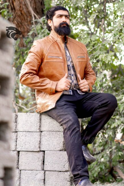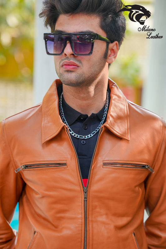 Men Tan Leather Jacket ML-jk005