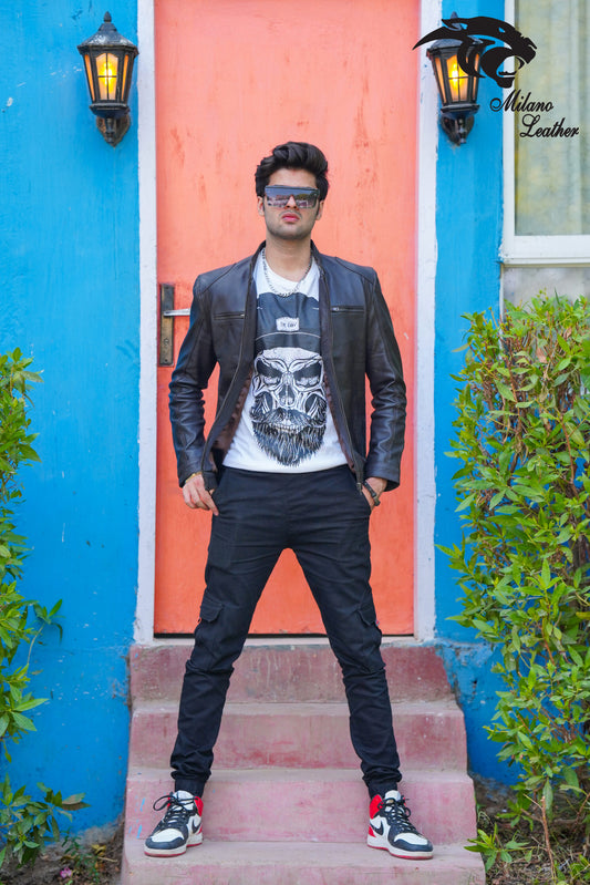 Men Black Leather Jacket ML-jk0011