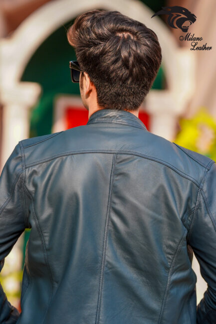 Men Navy Blue Leather Jacket ML-jk0010
