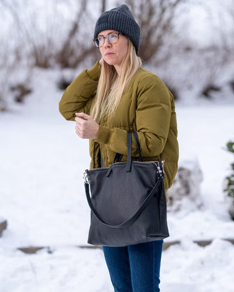 TURKISH TOTE BAG – MILANO LEATHER HERRINGBONE BAG BLACK-ML-0016