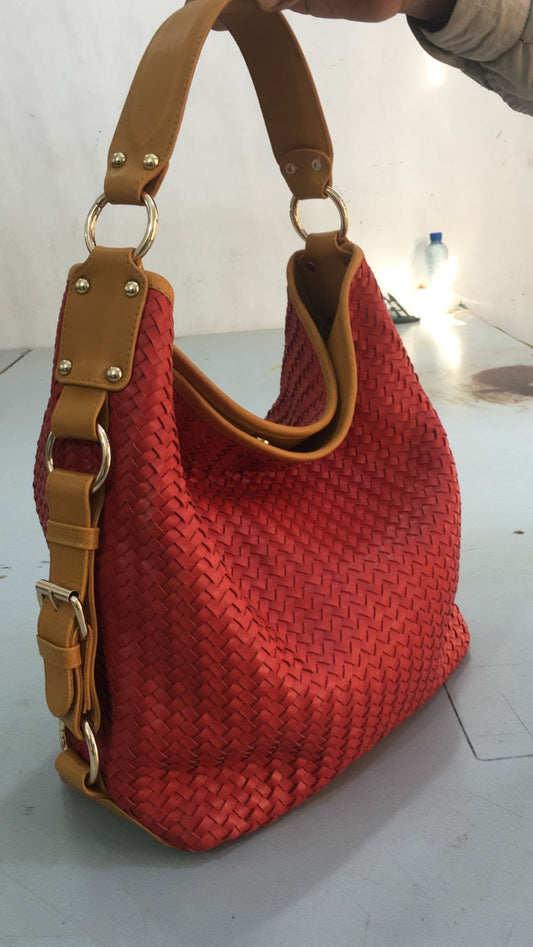 Turkish Red Women Leather Basket Tote Bag–Herringbone Zipper Bag-ML-003