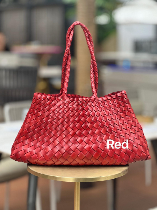 Milano Leather Heringbone Handwoven Genuine Cowhide Leather Tote Bag with Long Handle