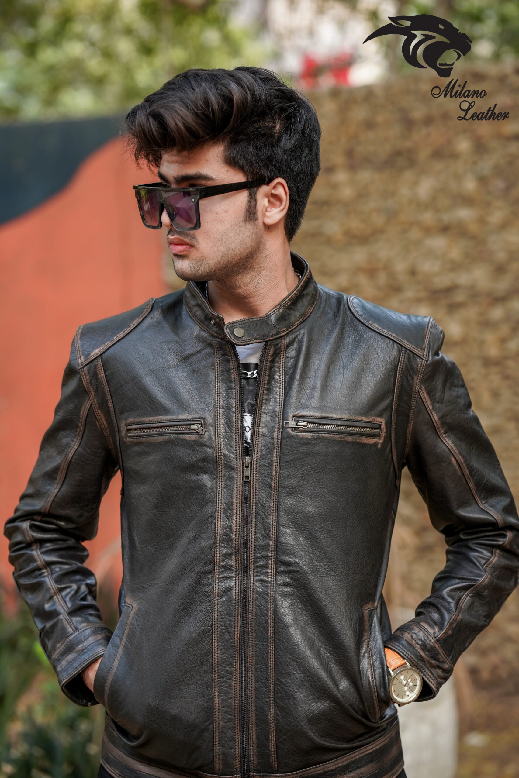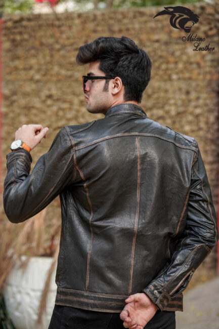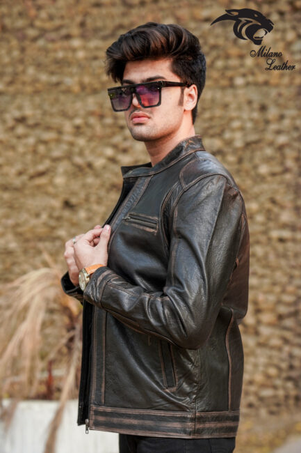 This black leather jacket for men is a classic style motorcycle jacket that is perfect for any occasion. Made from high-quality leather, this jacket is durable and stylish. The jacket features a sleek design with a zippered front and multiple pockets for storage. The black color gives it a timeless look that will never go out of style. It is perfect for men who want to look stylish and feel comfortable at the same time. Whether you’re riding your motorcycle or just out for a night on the town, this jacket is sure to turn heads.