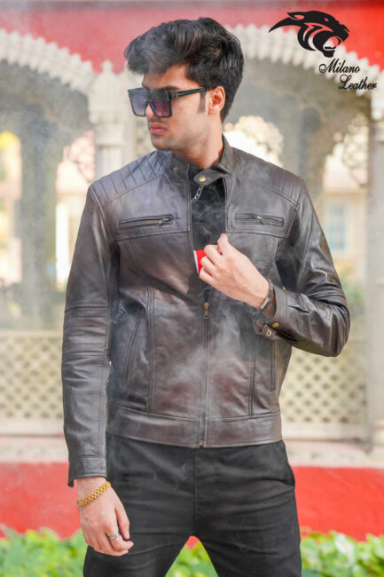 This black leather jacket for men is a classic style motorcycle jacket that is perfect for any occasion. Made from high-quality leather, this jacket is durable and stylish. The jacket features a sleek design with a zippered front and multiple pockets for storage. The black color gives it a timeless look that will never go out of style. It is perfect for men who want to look stylish and feel comfortable at the same time. Whether you’re riding your motorcycle or just out for a night on the town, this jacket is sure to turn heads.